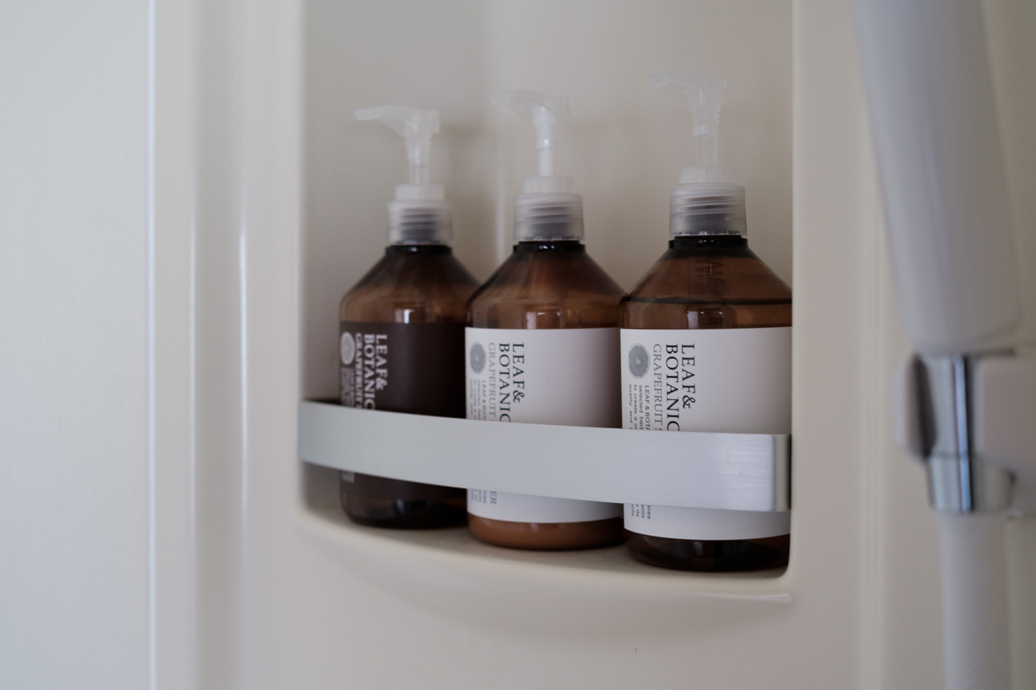 「LEAF & BOTANICS」のシャンプー、コンディショナー、ボディシャンプー、ハンドソープをご用意しています。